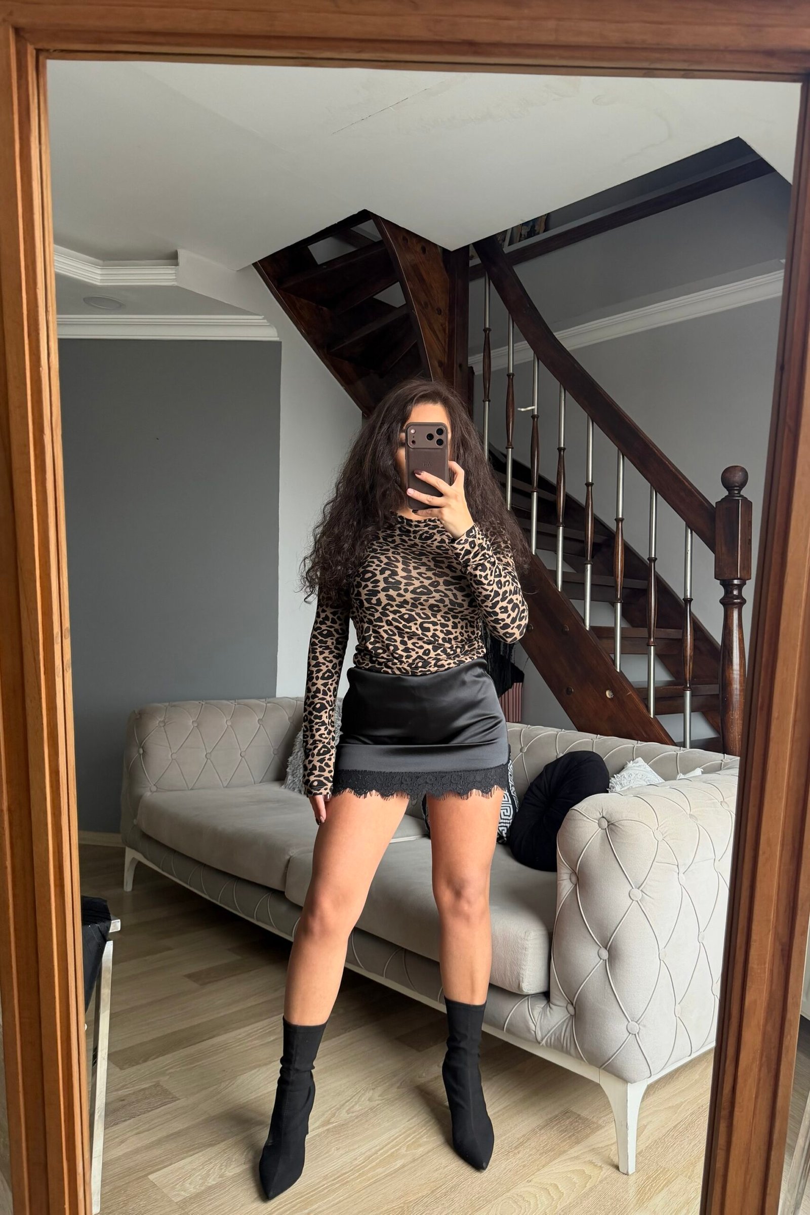 Mini Saten Dantelli Etek
