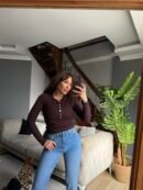 • Vücuda oturan slim fit kalıp