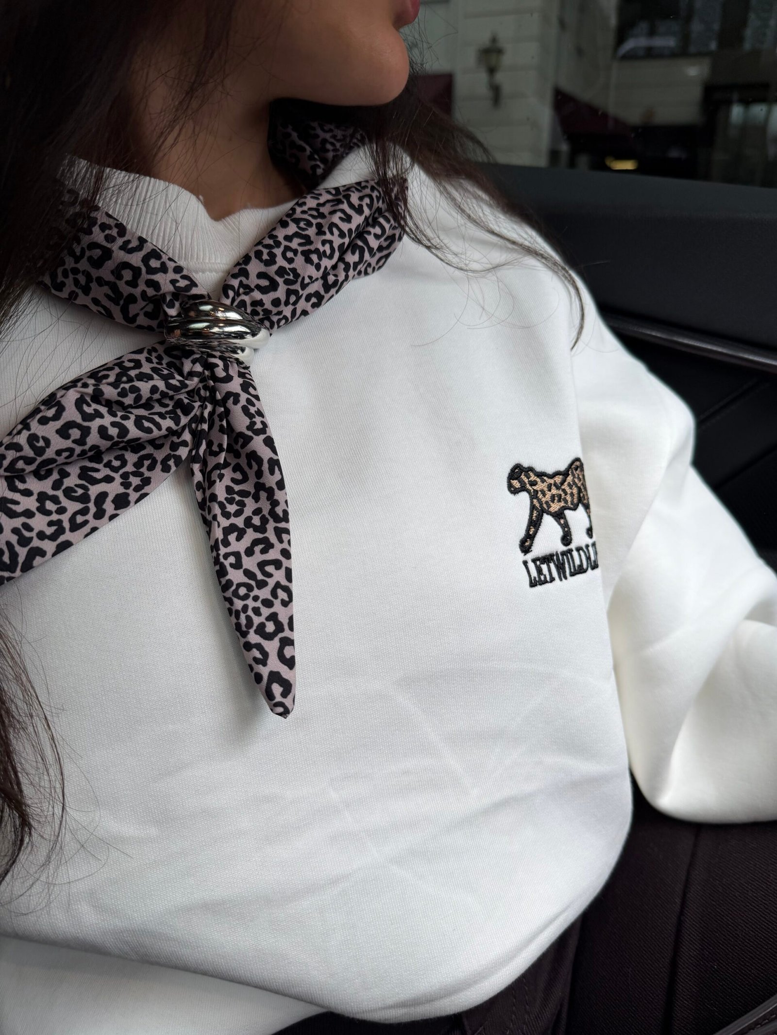 “Yumuşak dokulu ekru oversize sweatshirt, rahat kalıbı ve minik nakış detayıyla günlük kombinlerin en kurtarıcı parçası. Leopar fular/aksesuarla şık bir dokunuş katabilir, jean veya eşofman altıyla kolayca tamamlayabilirsin. Hem konforlu hem stil sahibi!