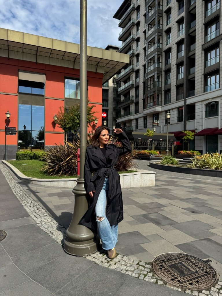 Zarif kemerli tasarımı, belinizi vurgulayarak şık bir silüet yaratır. Hafif ve mevsimlik kumaşı sayesinde hem serin havalarda hem de bahar aylarında günlük şıklık için idealdir. Zamansız Siyah ve asil Kahverengi renk seçenekleriyle, her kombininize sofistike bir dokunuş katacak.