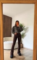 Crop kesim modeli, özellikle yüksek bel pantolonlar ve taytlarla mükemmel bir uyum sağlar. Etek ucundaki ayarlanabilir büzgülü detayı sayesinde dilediğiniz gibi şekillendirebilirsiniz. Günlük şıklık ve sokak stili için ideal olan bu ceket gömlek, gardırobunuzun en havalı parçası olacak.