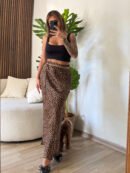 Maxi boy uzunluğu ve dökümlü yapısıyla her adımda havalı bir görünüm sunar. Siyah basic crop toplar veya şık bluzlarla kombinleyerek hem günlük şıklık hem de gece davetleri için ideal bir stil yaratabilirsiniz.