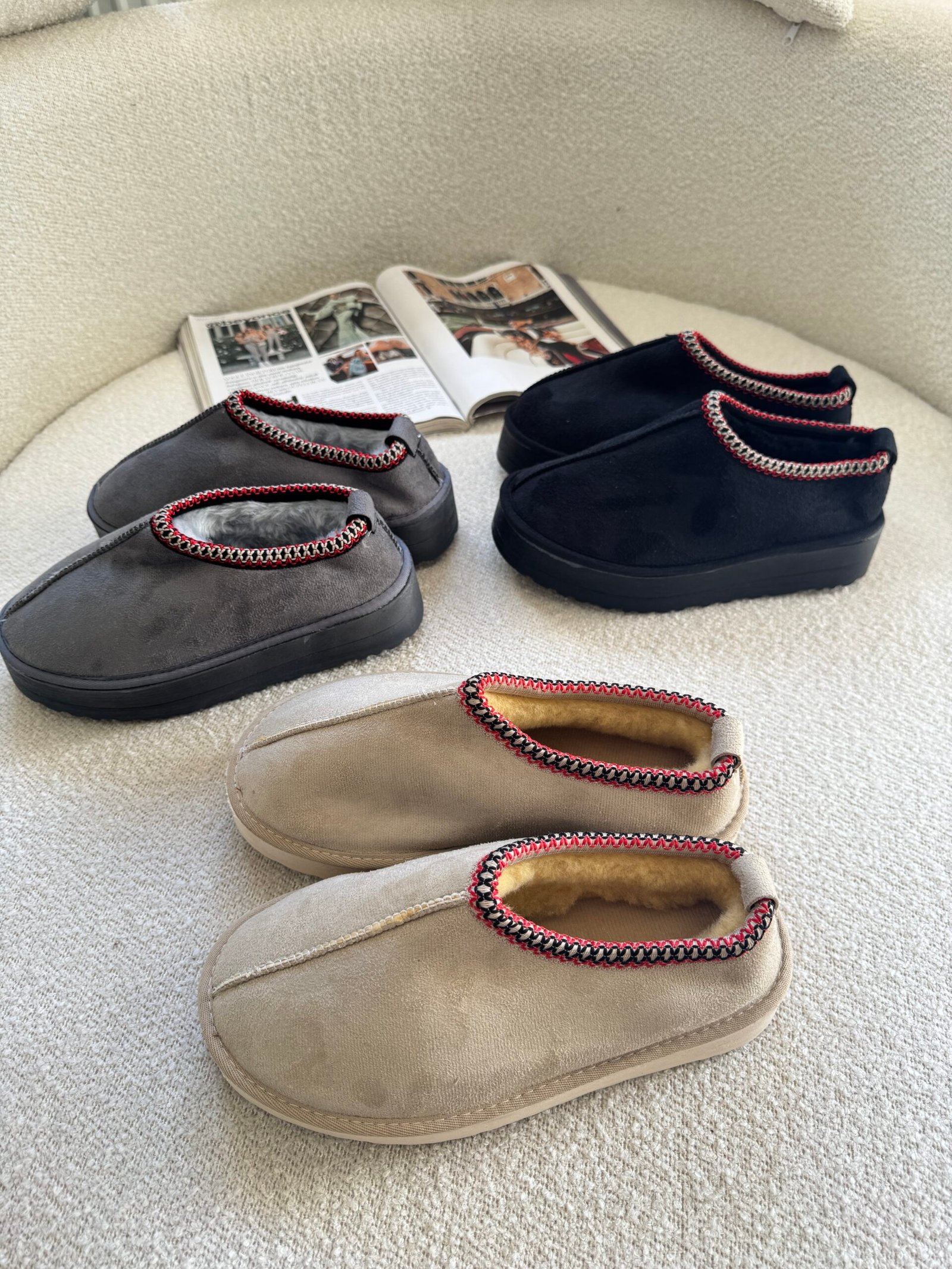 Materyal: Süet görünümlü dış yüzey, pelüş iç astar