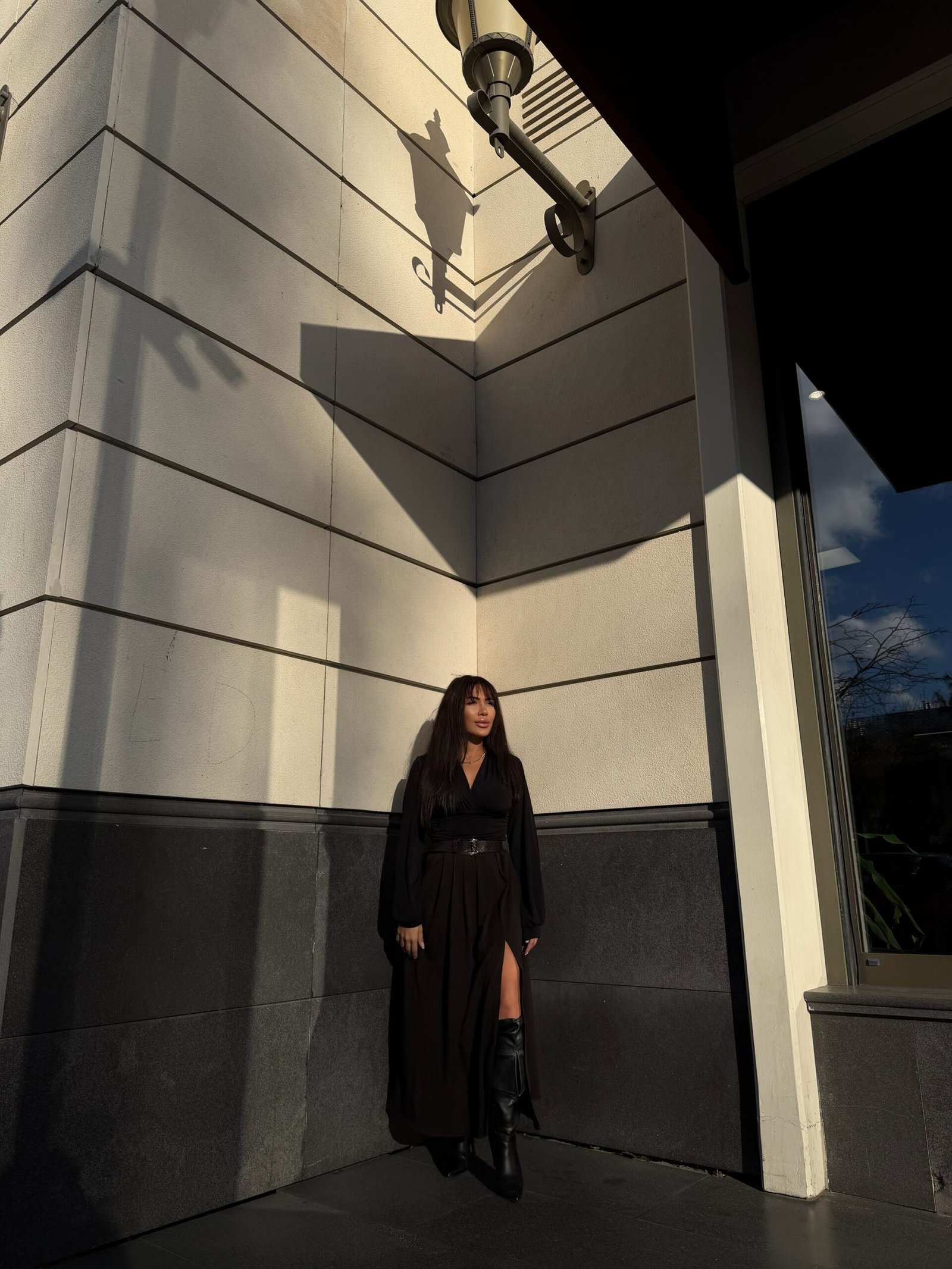 • Detay: Önden derin yırtmaç detayı, pileli kumaş