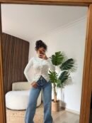 Ön kısmındaki çıtçıt detayları, sade tasarıma hareket katarak modern bir stil oluşturur. Yüksek bel jeanler, kumaş pantolonlar veya eteklerle kombinleyerek hem ofis hem de günlük stilinize kolayca uyarlayabilirsiniz.