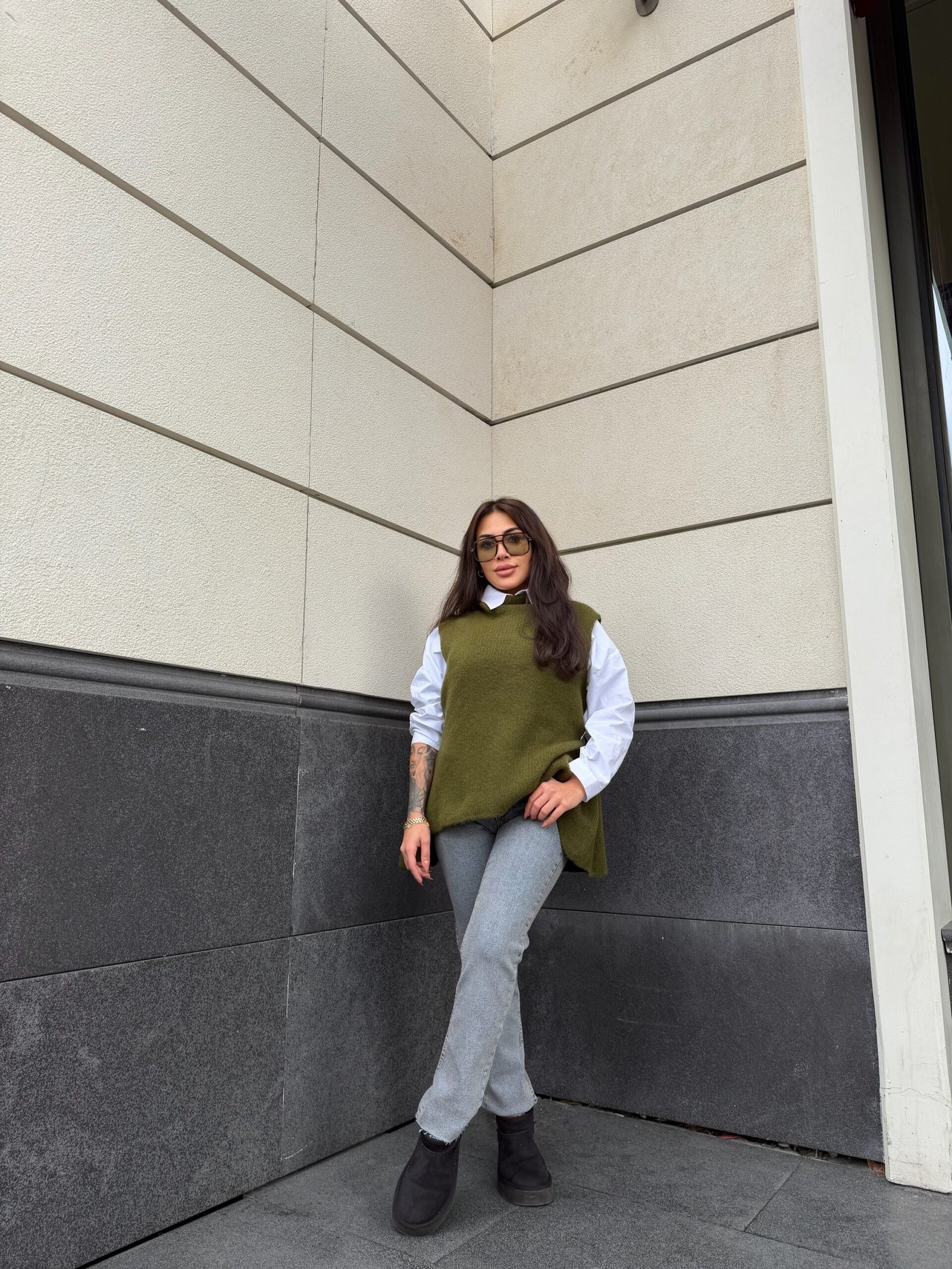 Gömlek, boğazlı ya da basic tişört üzerine giy; jean’le günlük, deri pantolon/etekle daha iddialı!