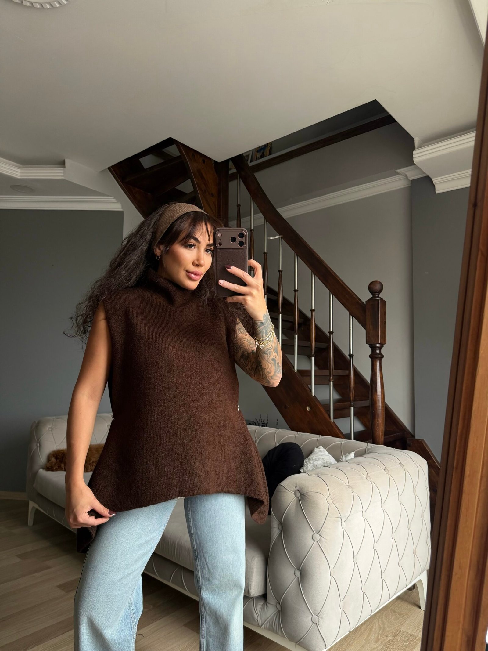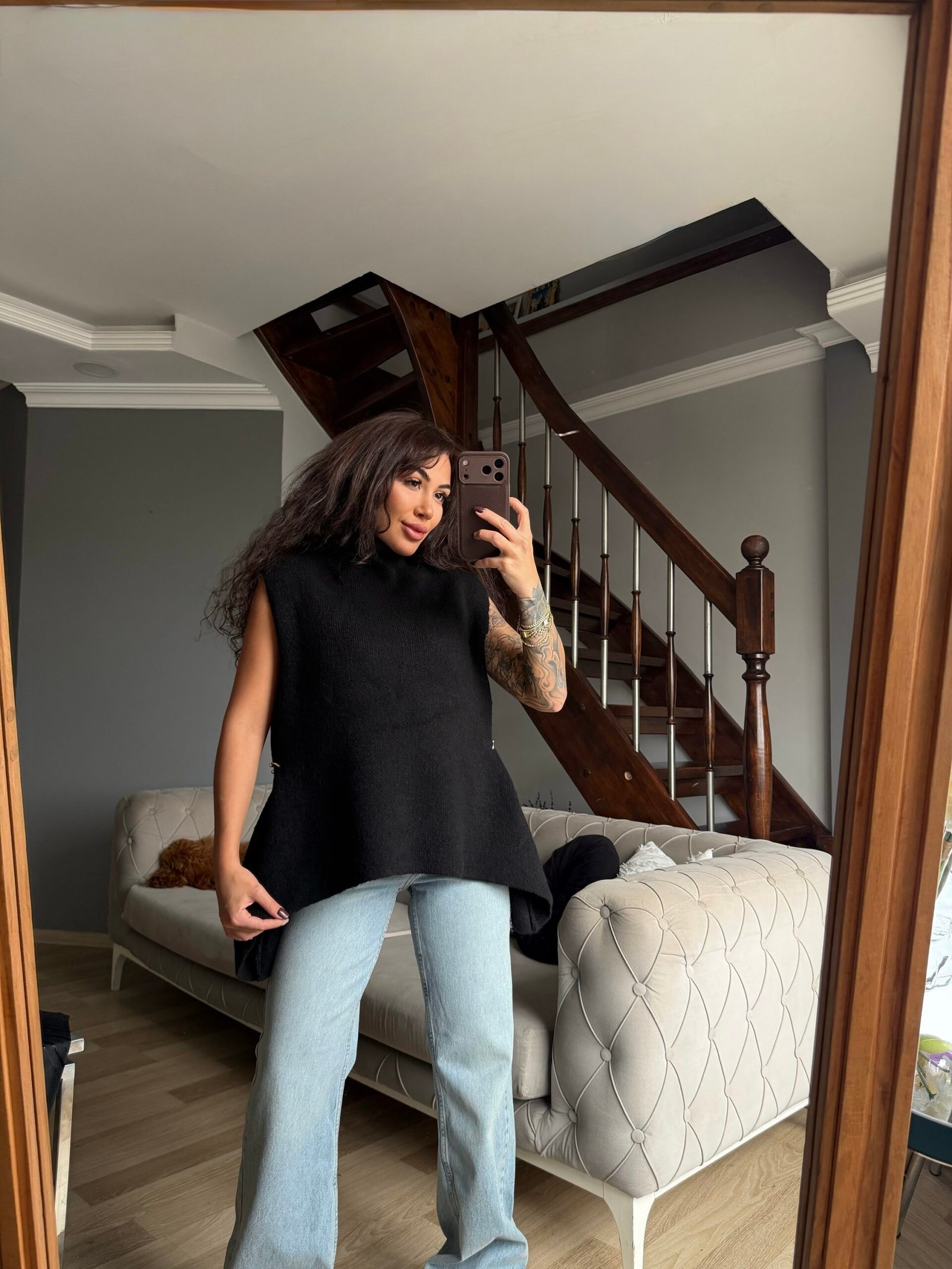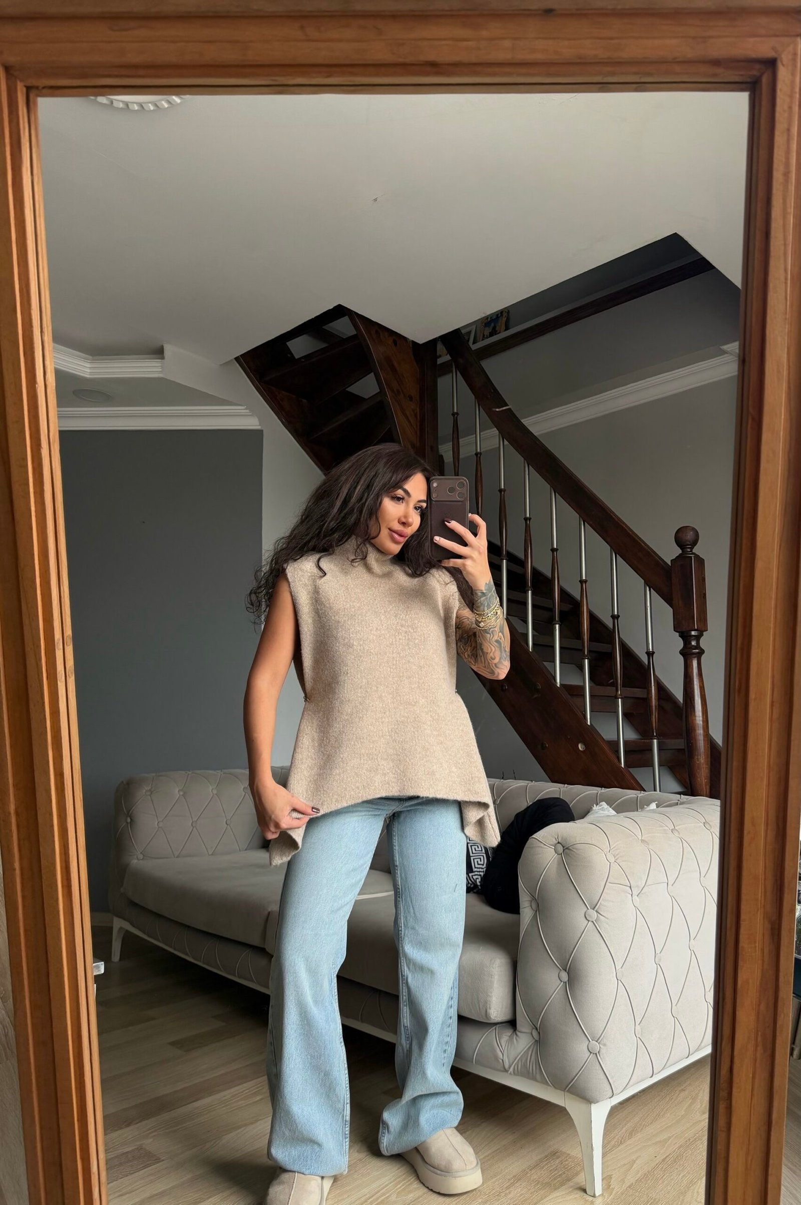 Balıkçı yaka duruşu ve salaş kesimiyle tek hamlede şık görünüm 💫